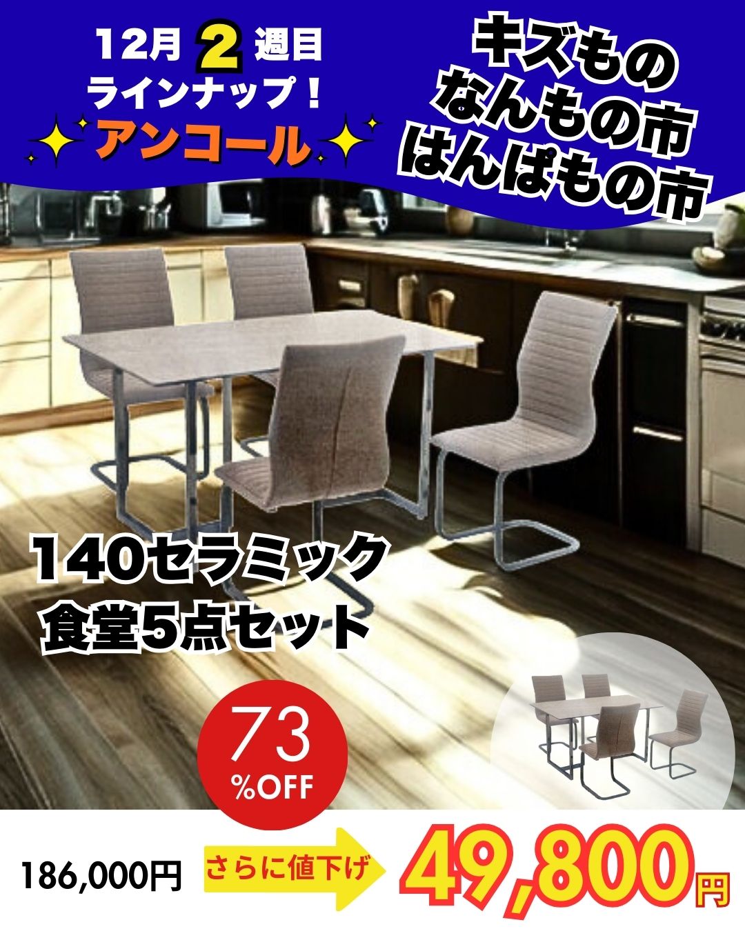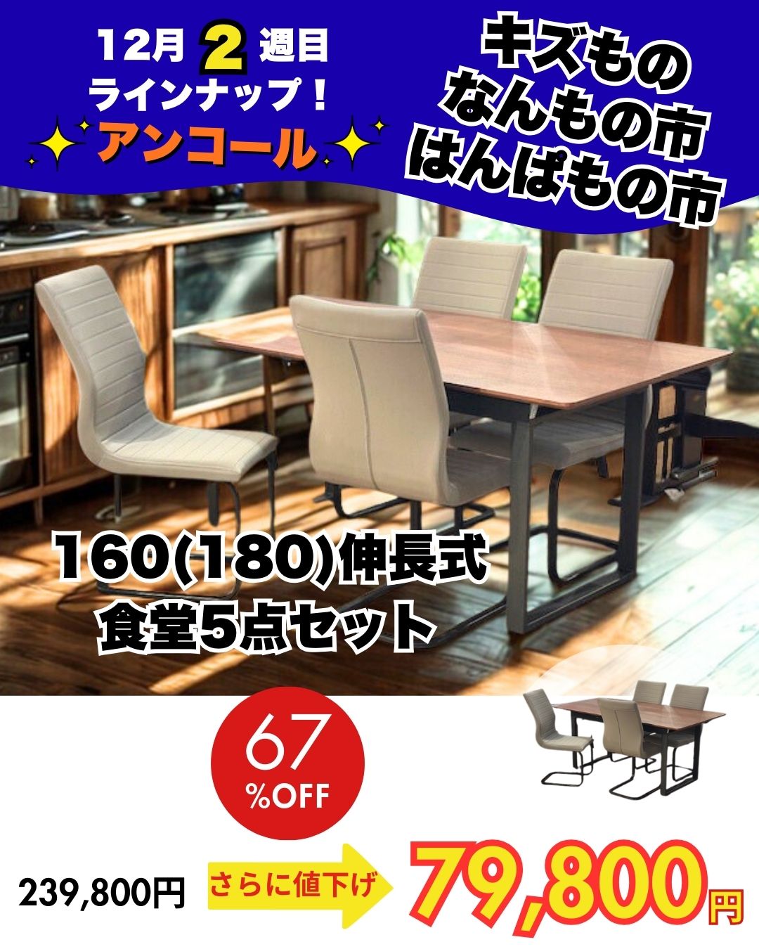 90巾食卓3点セット ㋱76,670円→24,800円