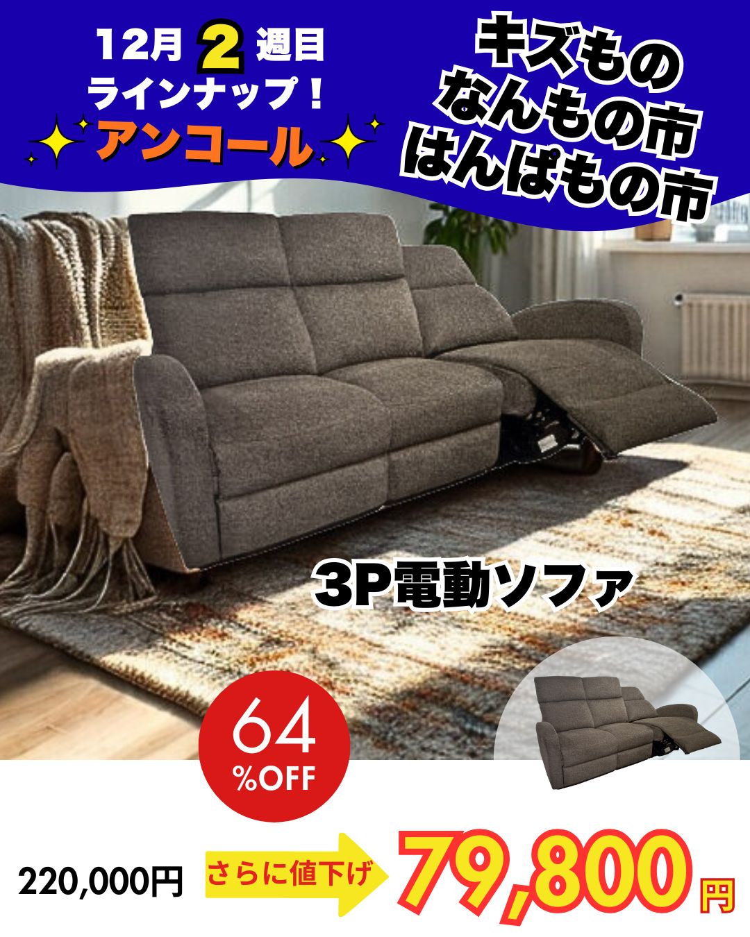 3Pソファ ㋱78,000円→19,800円