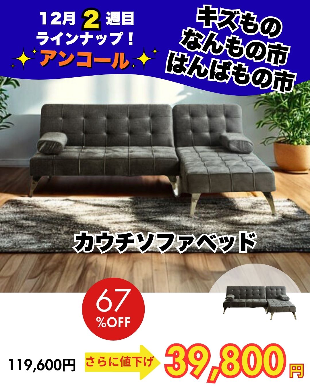 ソファベッド ㋱84,700円→39,800円