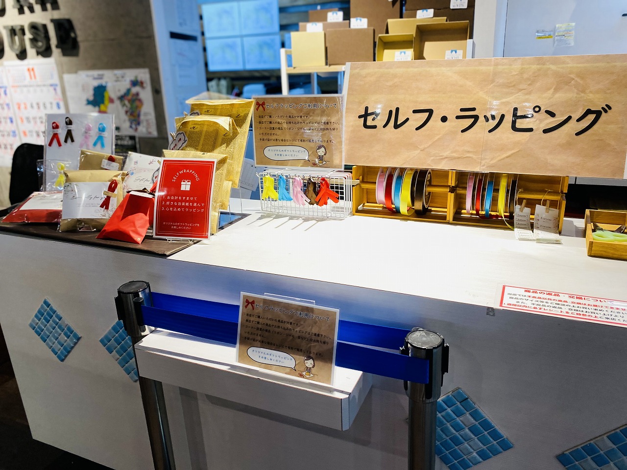 セルフでラッピングをされたい方は、雑貨商品をご購入後にスタッフまでお声かけください。 購入された商品のサイズに合わせて、袋や包装紙をお渡しいたします。