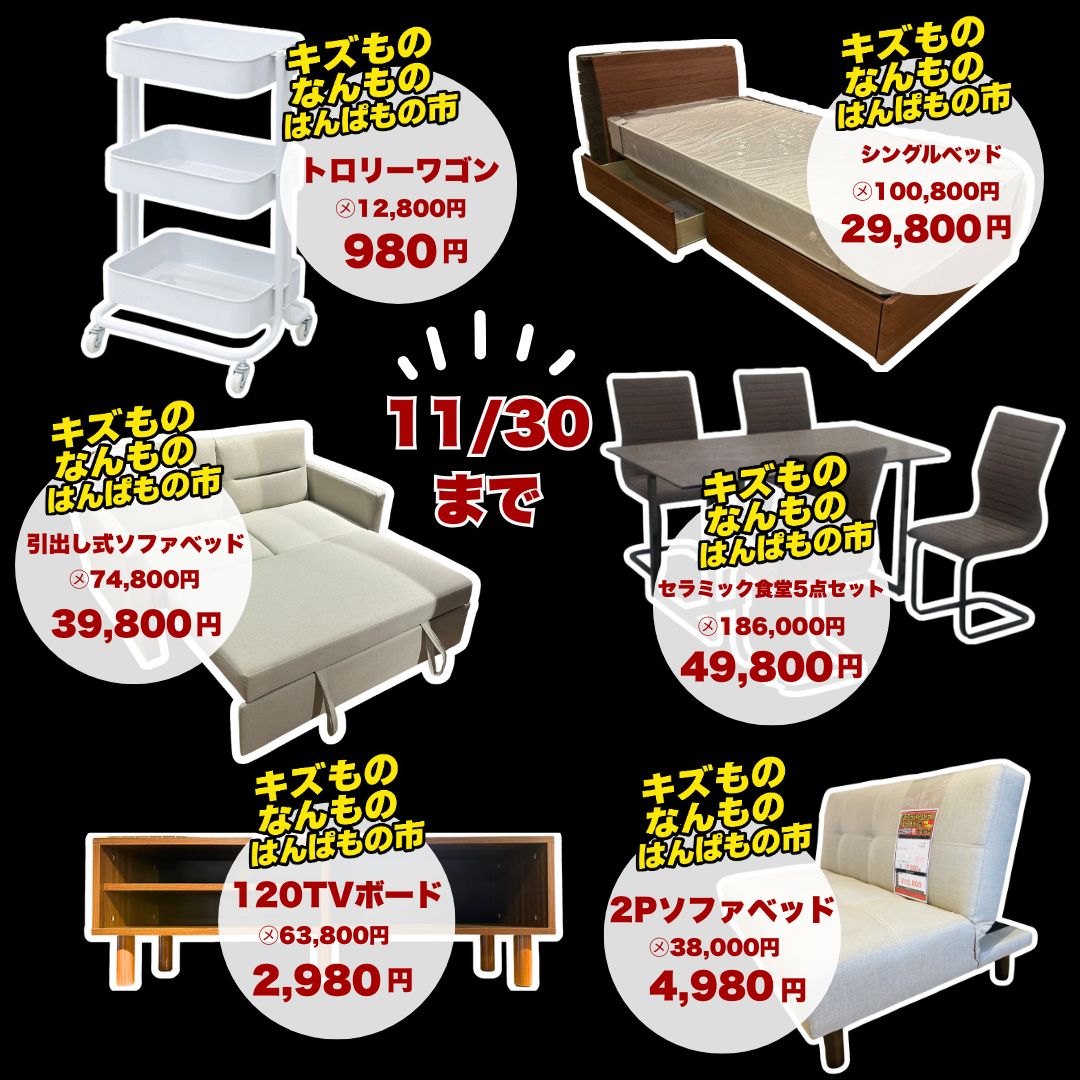 【11/8~11/30】掘り出し家具が勢ぞろい!キズもの・なんもの・はんぱもの市