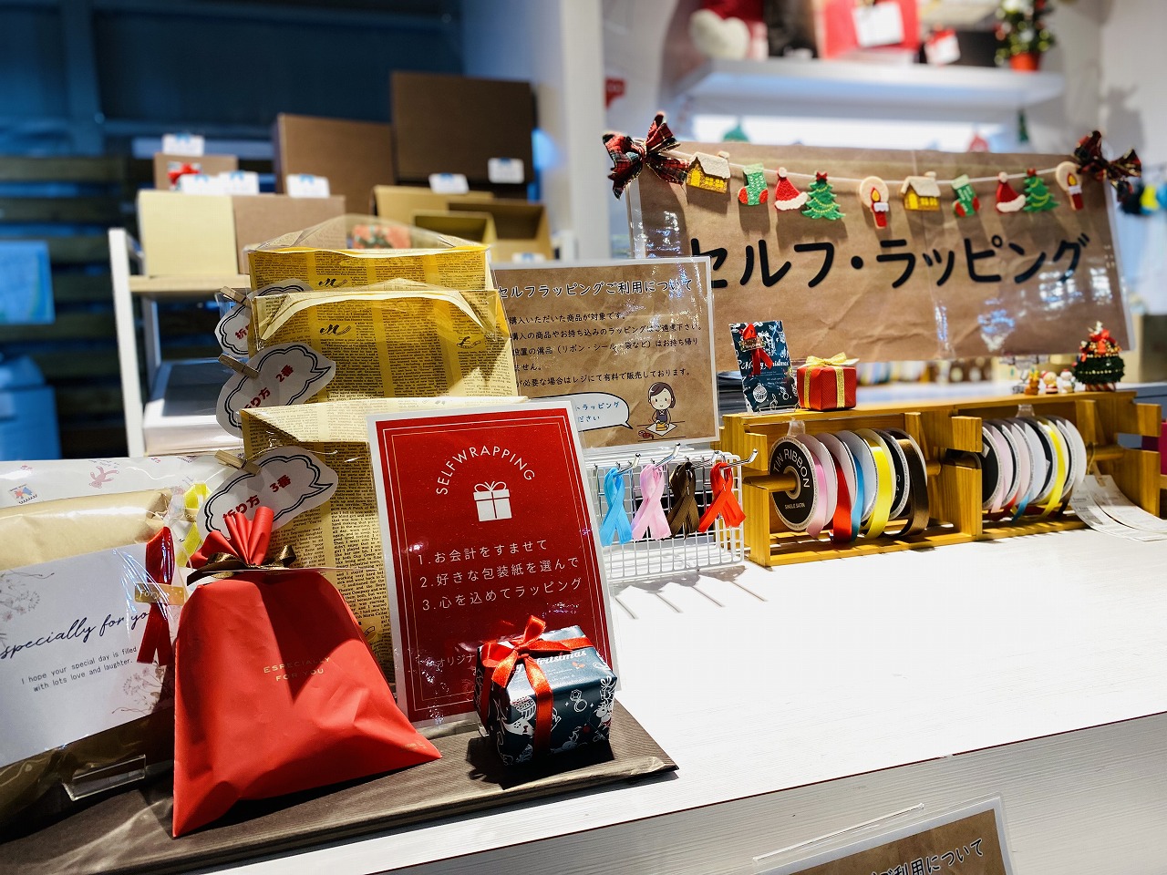 セルフでラッピングをされたい方は、雑貨商品をご購入後にスタッフまでお声かけください。 購入された商品のサイズに合わせて、袋や包装紙をお渡しいたします。