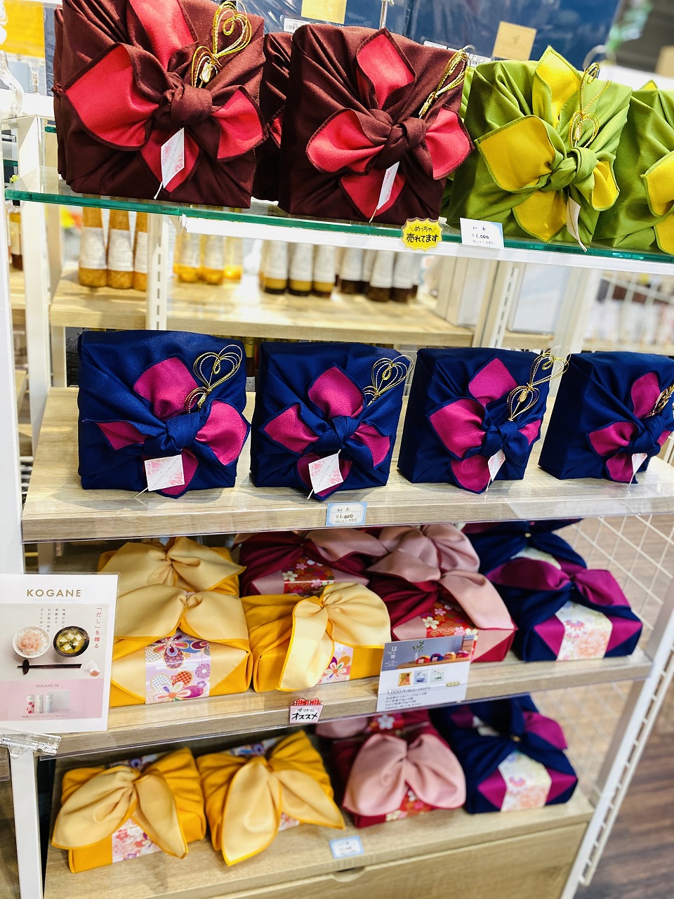 中身は出汁やかつお節といった実用性の高い食品。 持ち運びしやすい軽さでありながら、 ふろしき包みの華やかな見た目が、 贈り物としての特別感をしっかり演出してくれます。